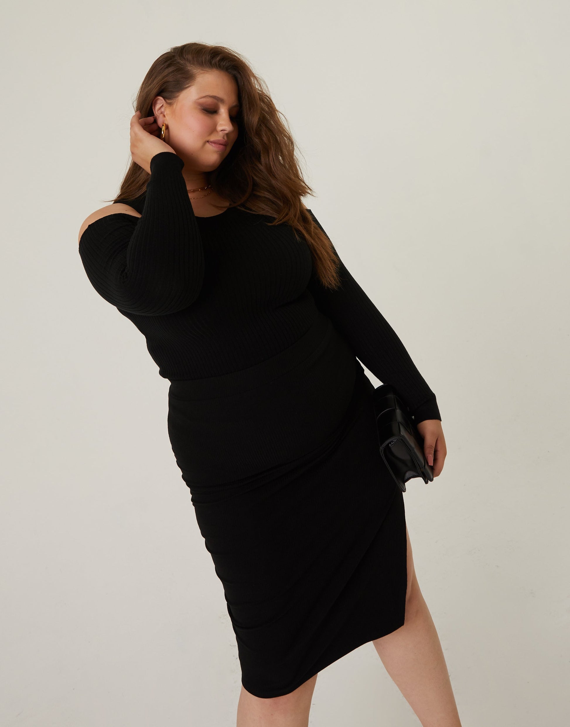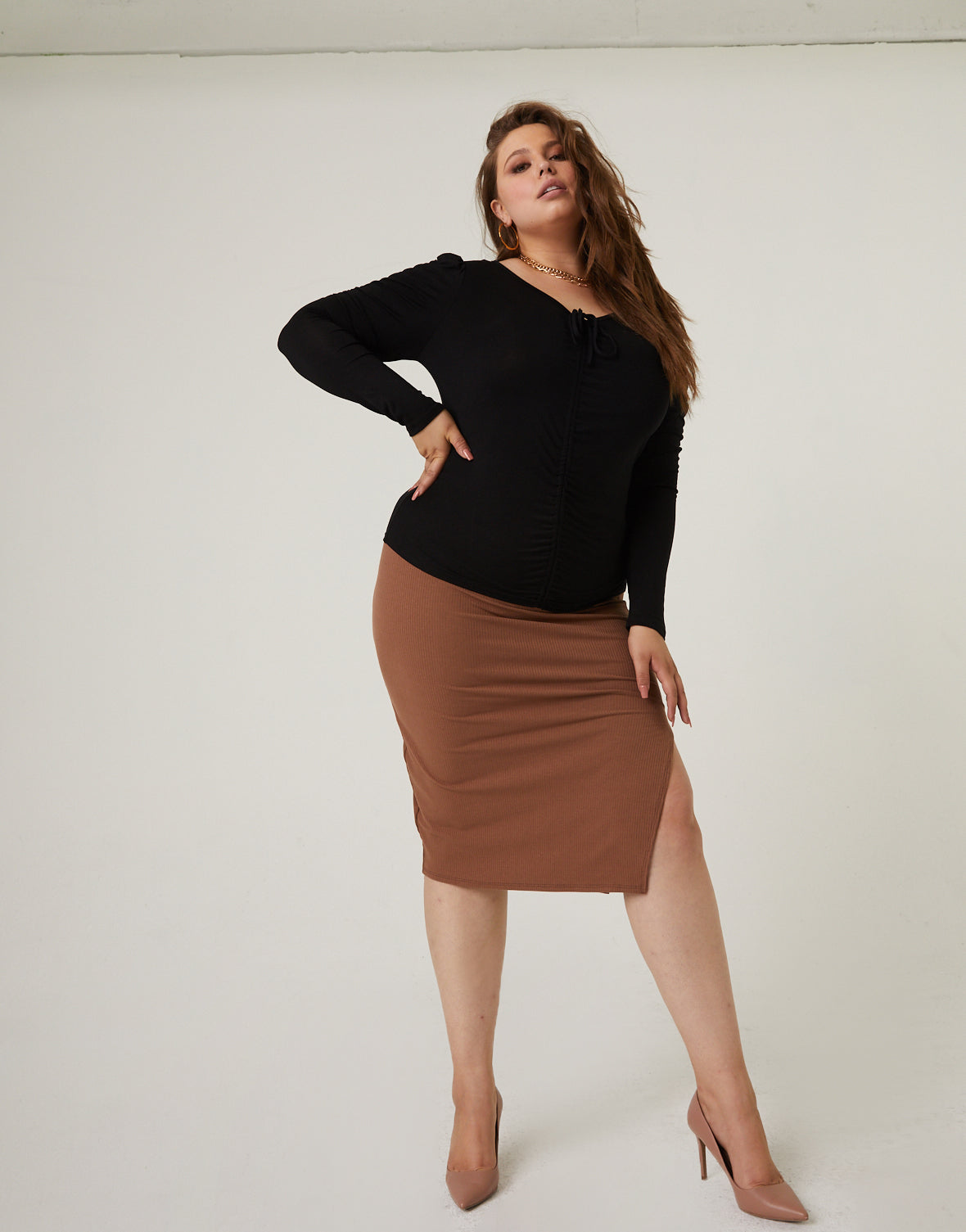 A simple skirt that will never go out of style, the?Curve Bodycon Skirt With Slit is easy to pair and comfy to wear!