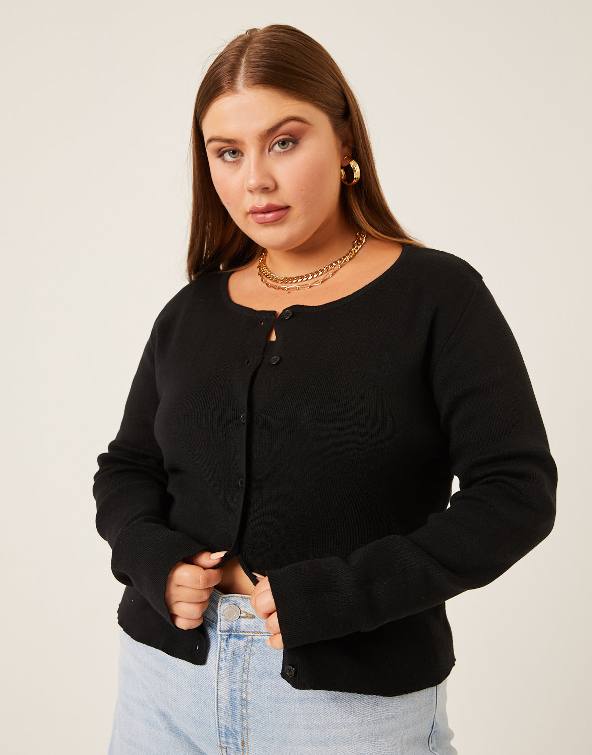 Sweet?and casual, the?Curve Button Cardigan Knit Top is the key to a simple outfit.