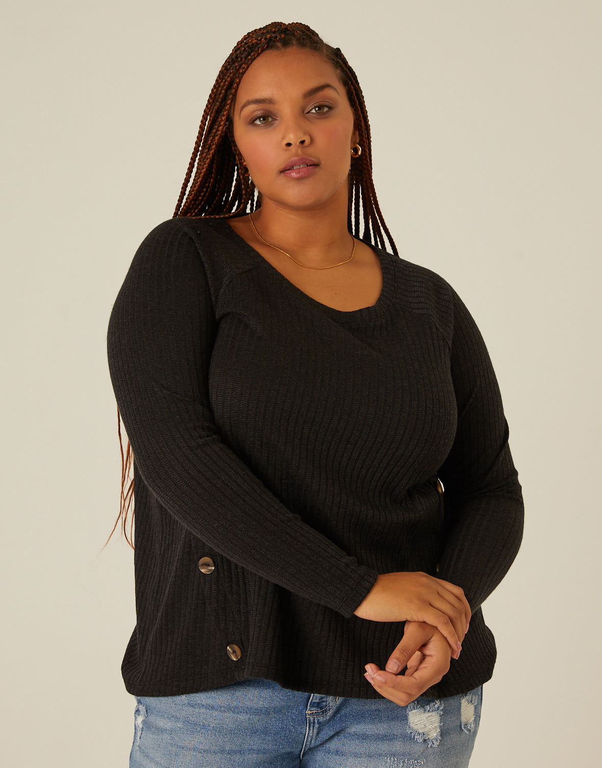 Having lots of easy, comfortable tops to wear is a sign of a complete wardrobe, and the?Curve Button Detail Ribbed Top is a perfect option.