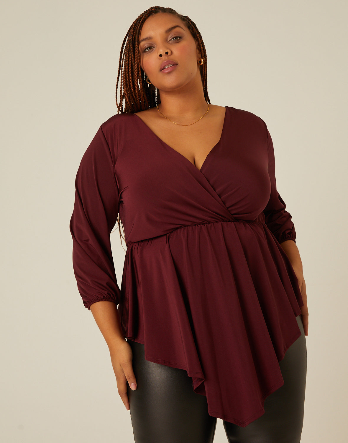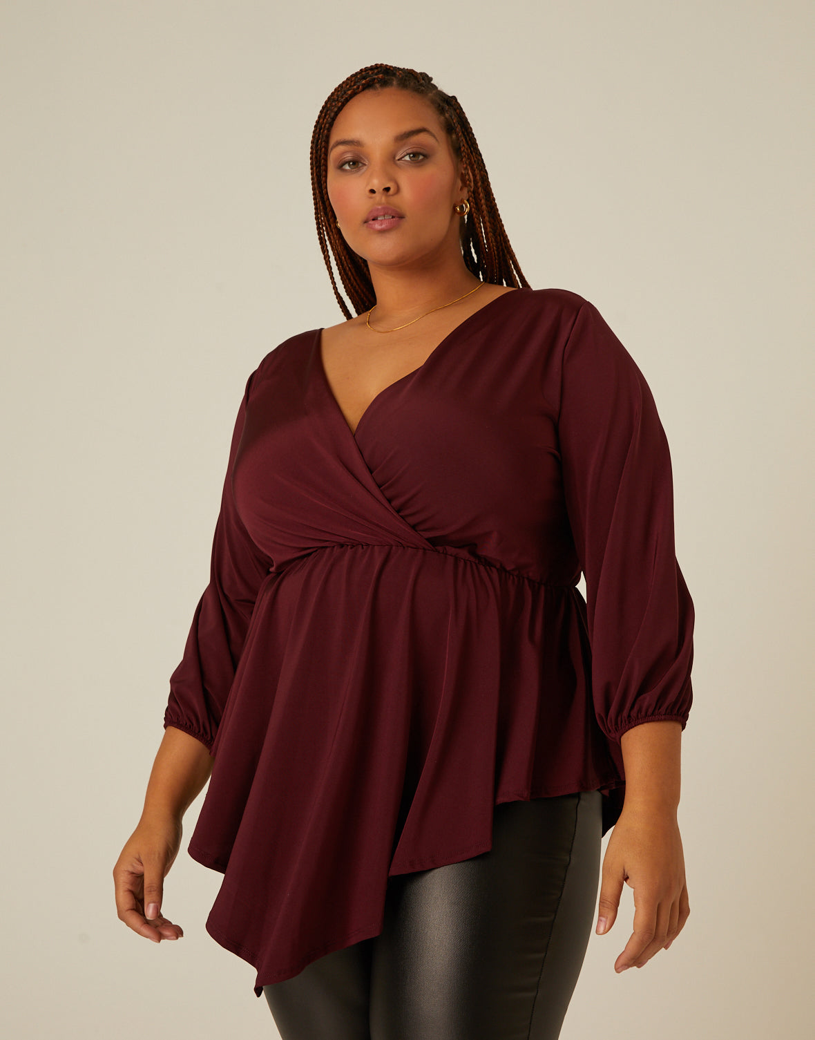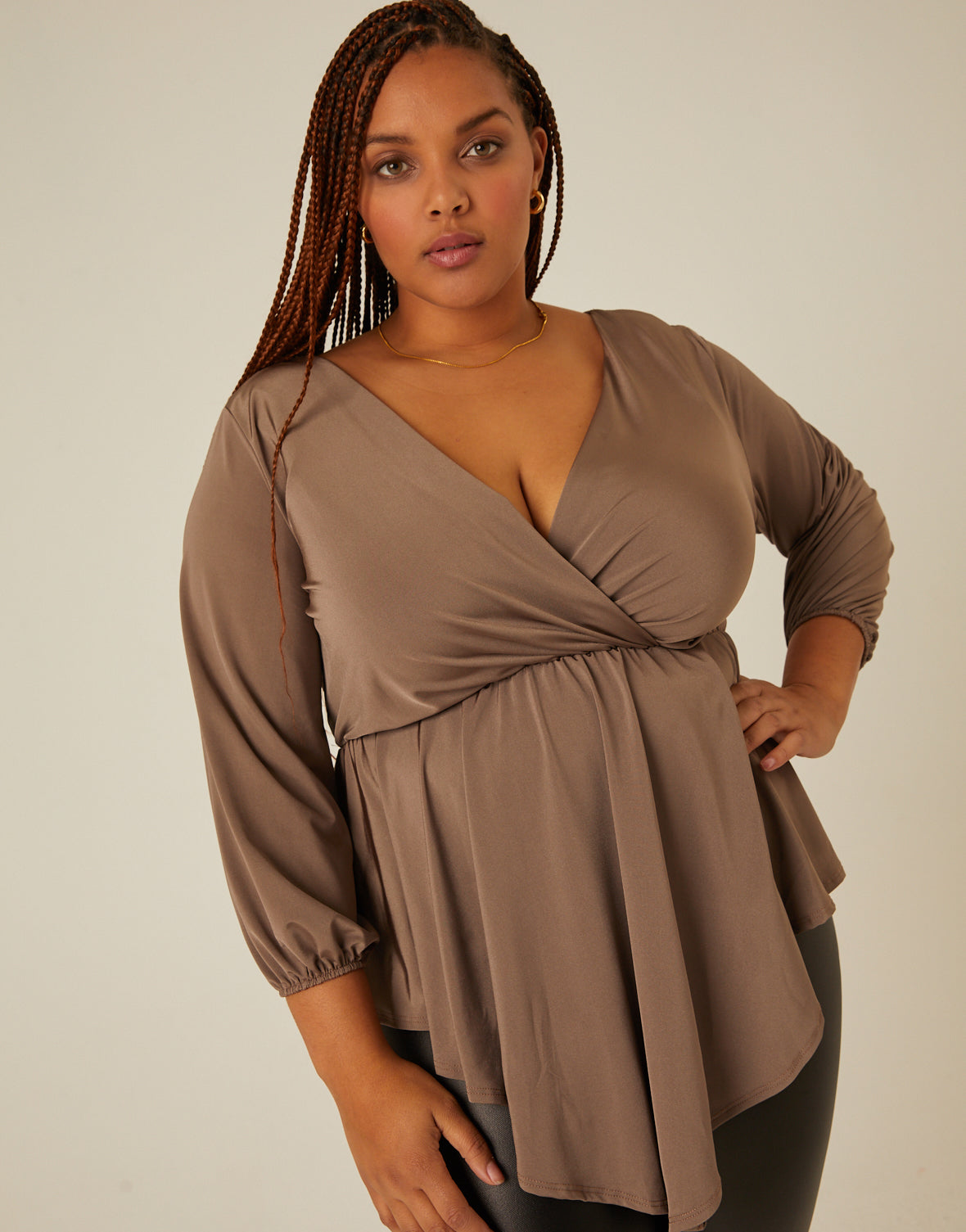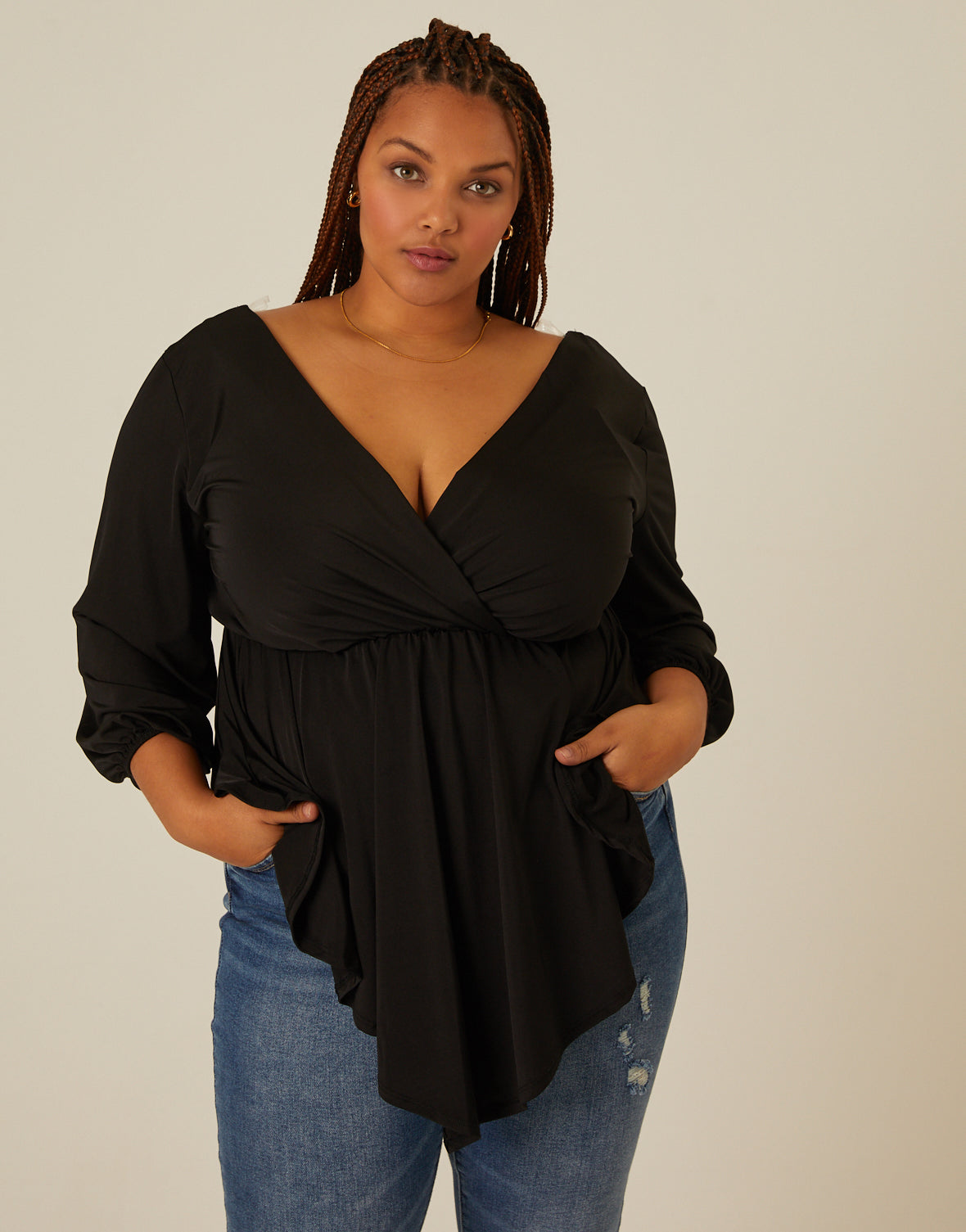 Plus Size Drapey Surplice 3/4 Sleeve Top