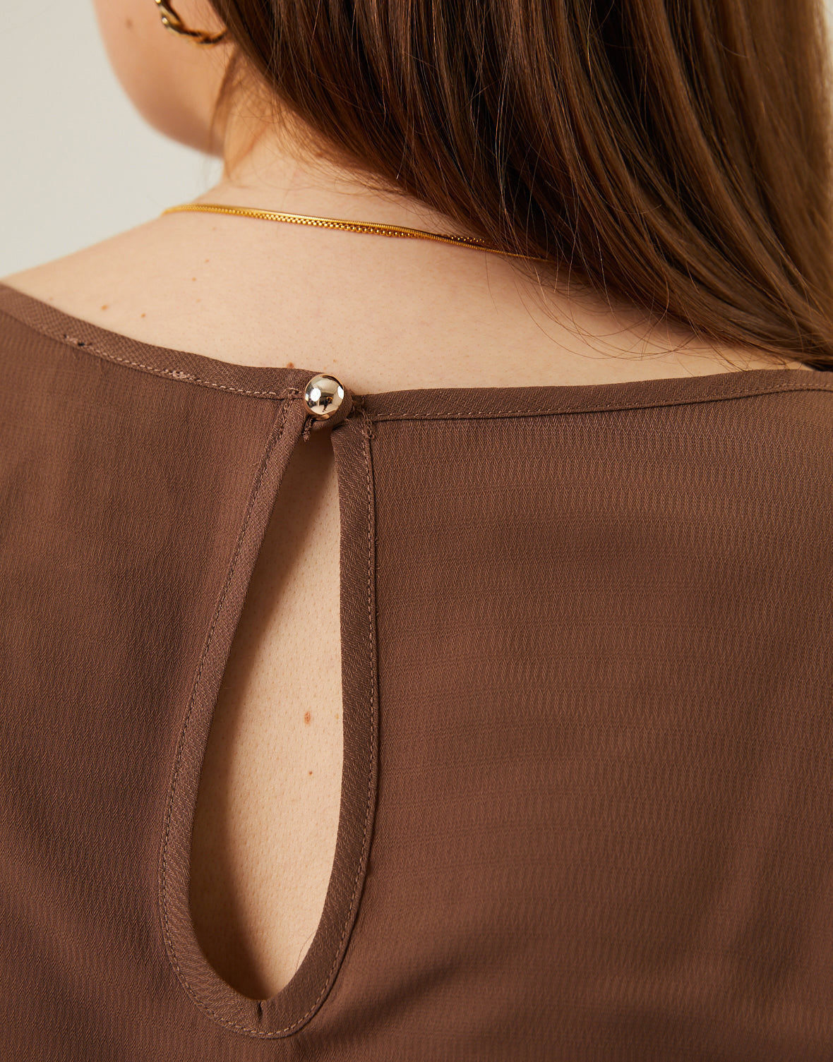 - This top features a crew neck, cuffed short sleeves, and one button at the back of the neck.?