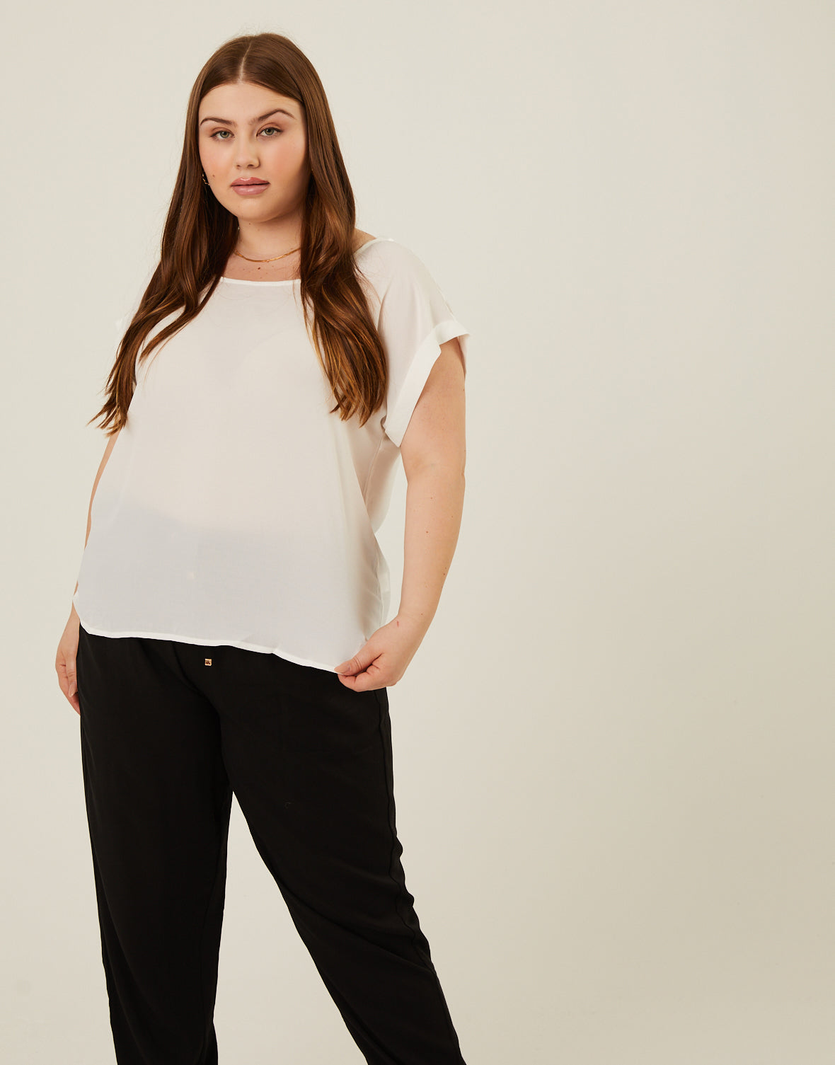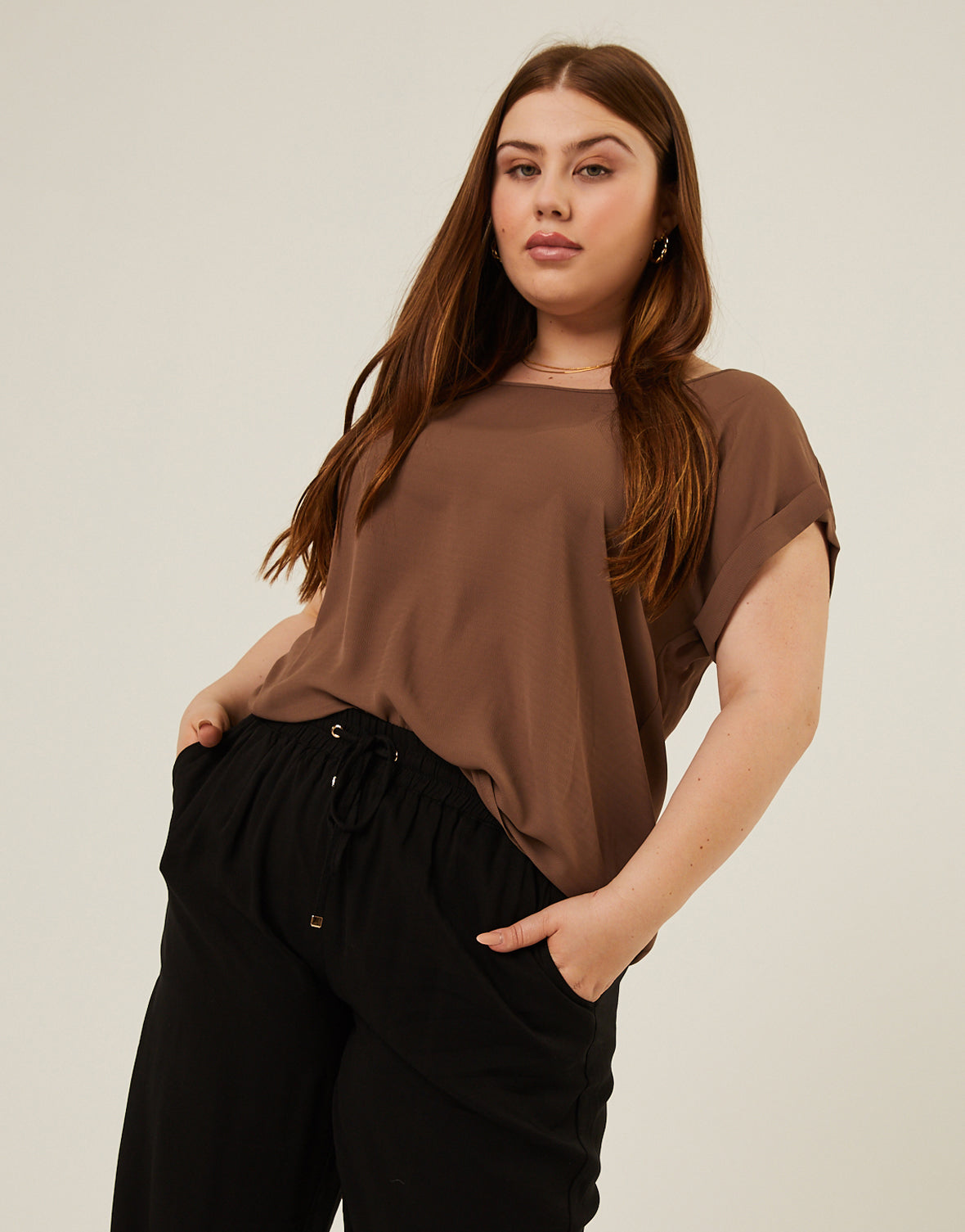 Easy?to dress up or down, the Curve Flowy Woven Tee is simple and versatile. We're loving styling this plus size?top with statement for an easy workplace outfit or elevating it by layering with some statement . No matter how you style it, this classic, curvy tee shirt is sure to be a capsule wardrobe favorite.