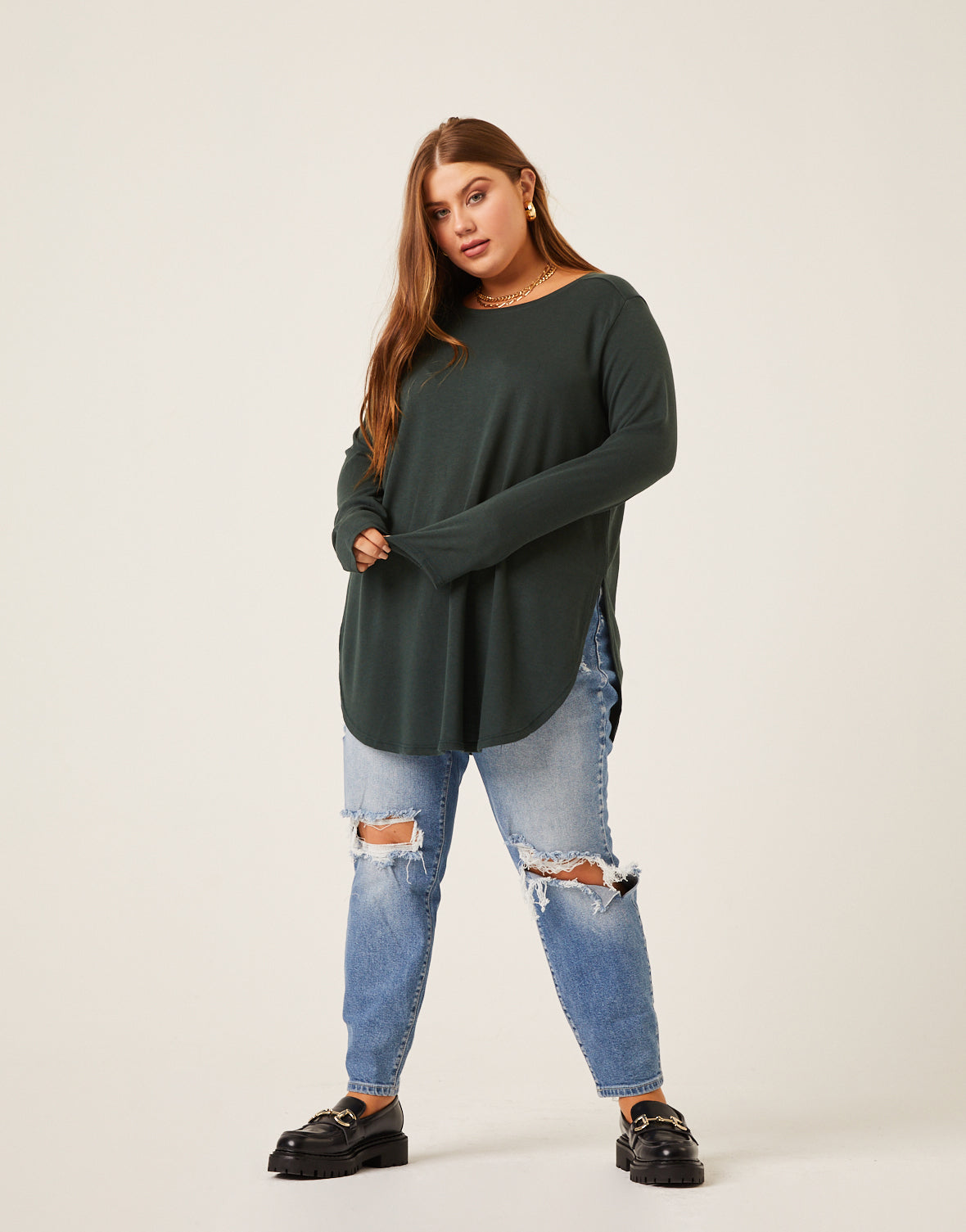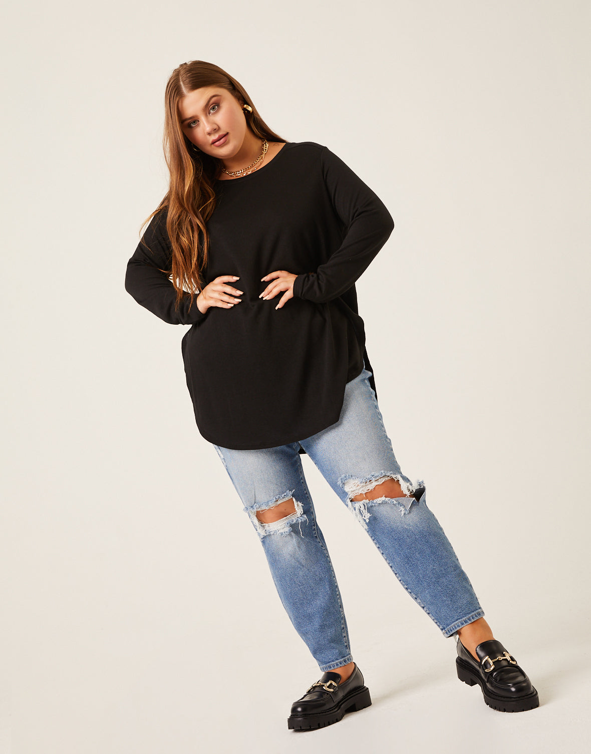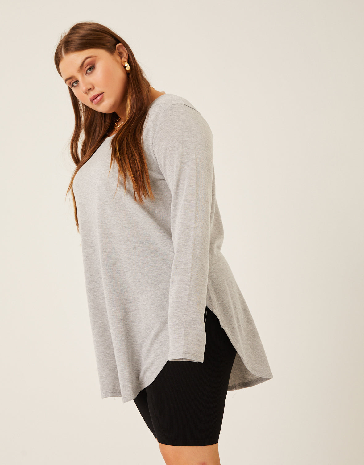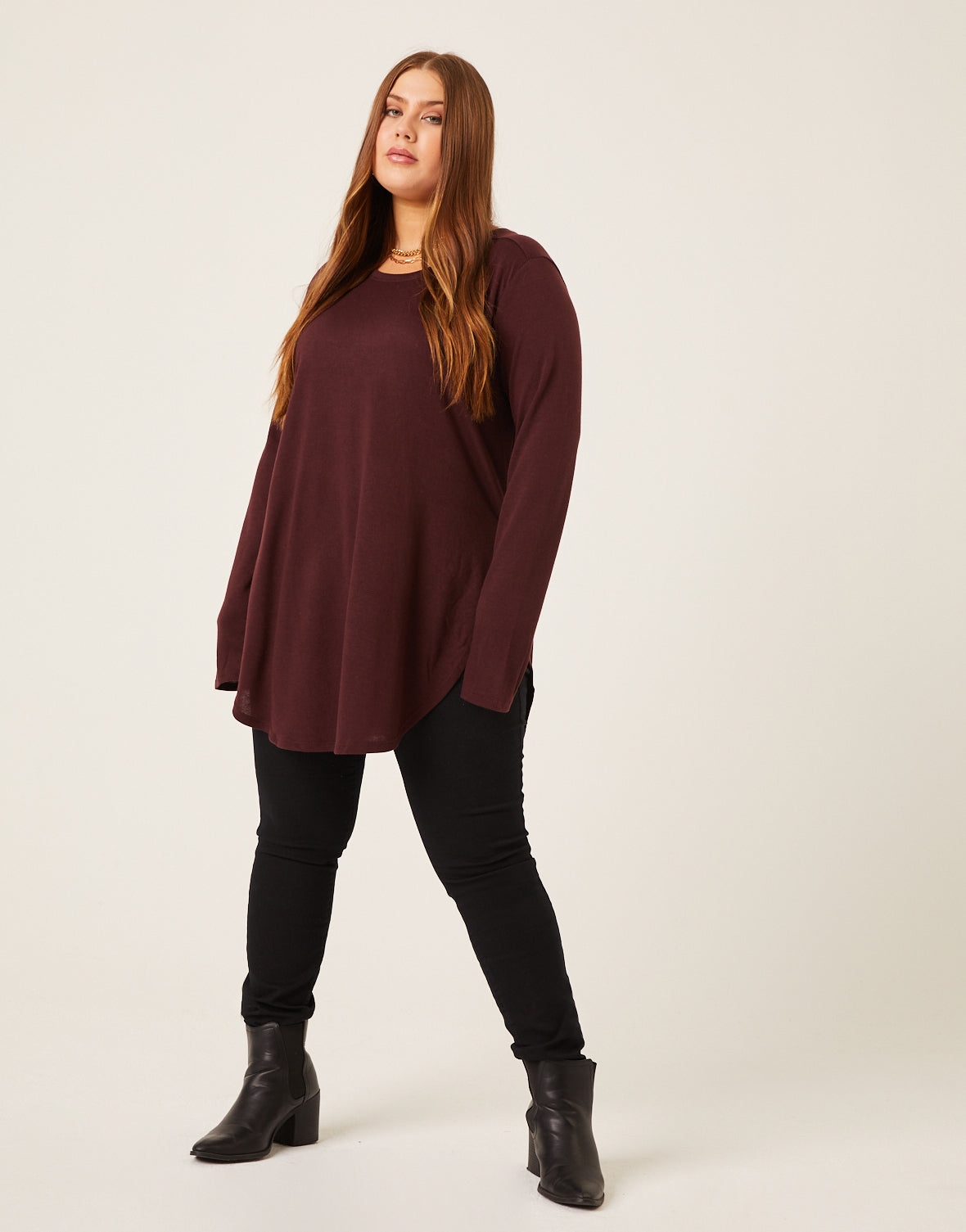 A simple basic perfect for cold-weather layering, the?Curve Knit Flowy Long Sleeve Tee?is a great foundational wardrobe piece. This plus size?oversized?top is great for layering under shackets or??for a warm winter outfit or with a pair of simple??for a comfortable loungewear look.