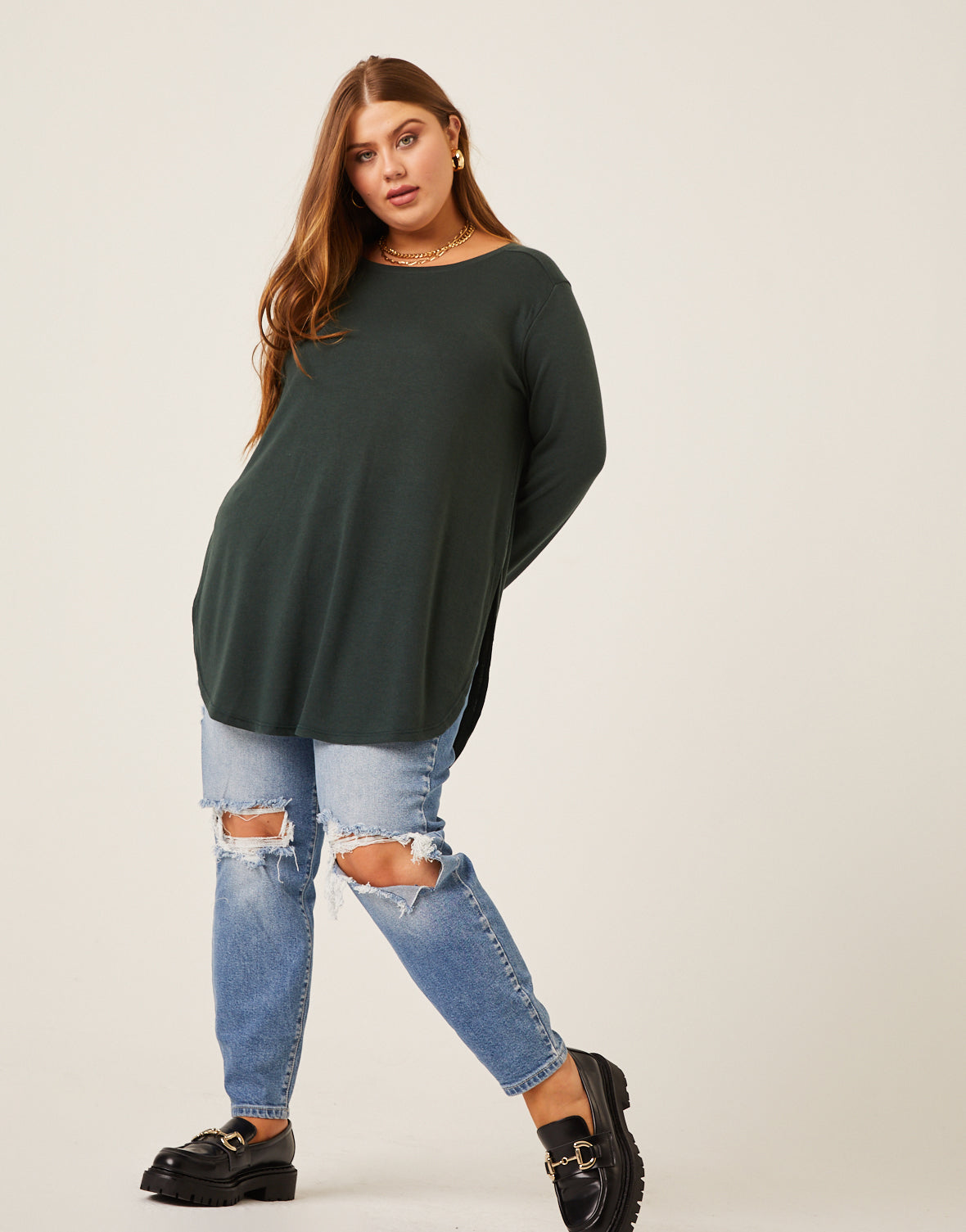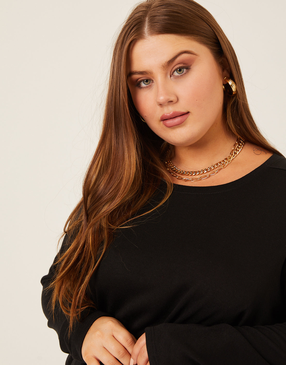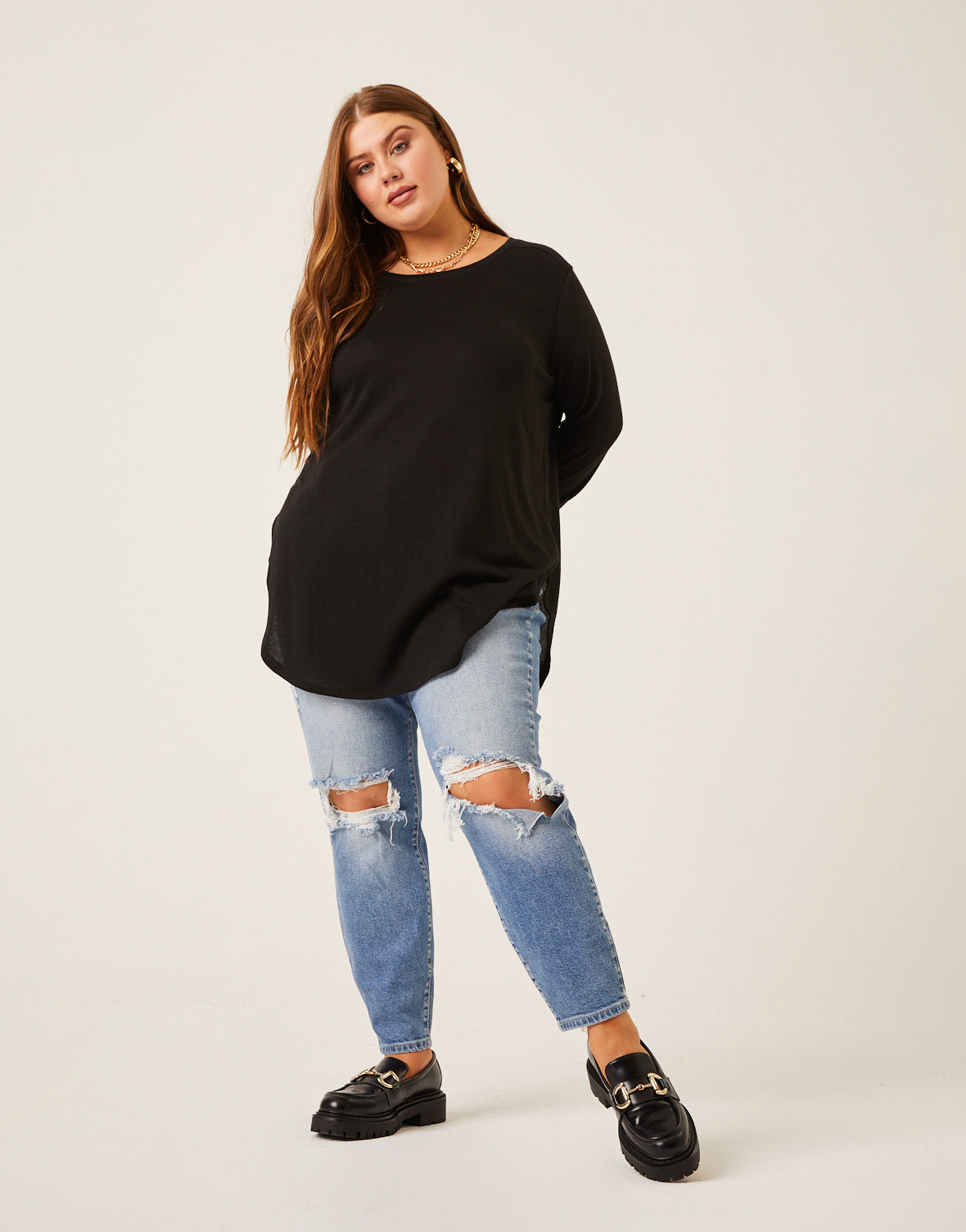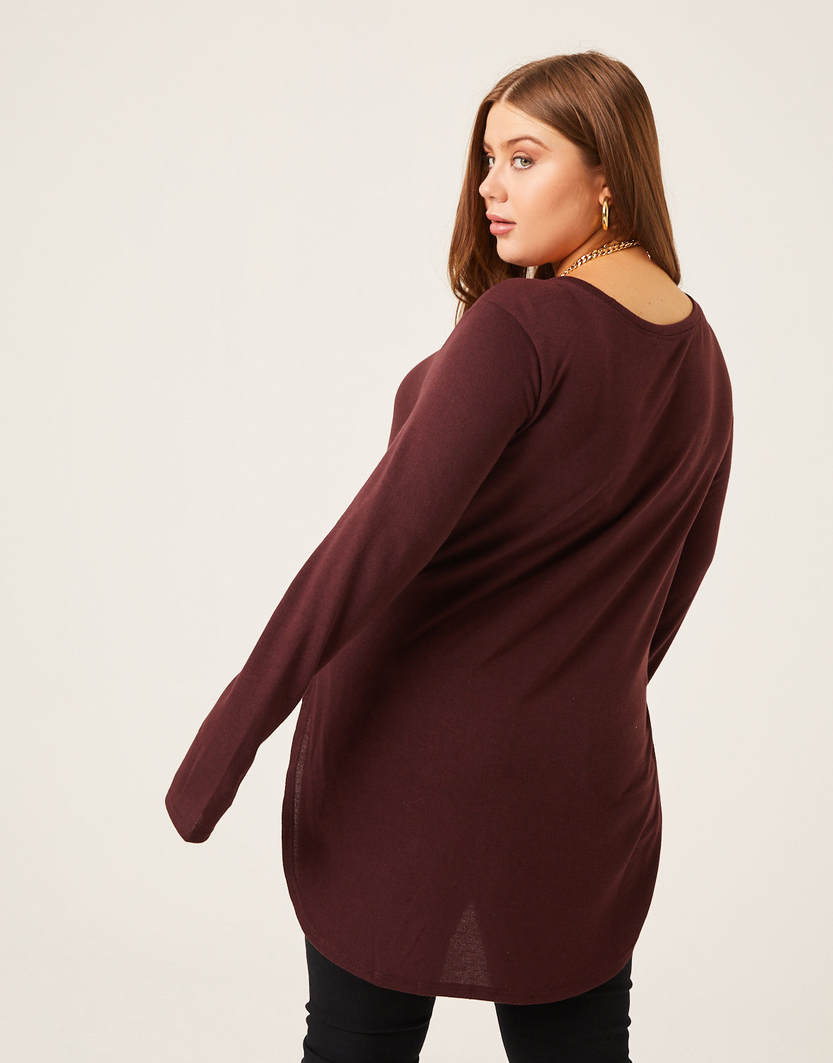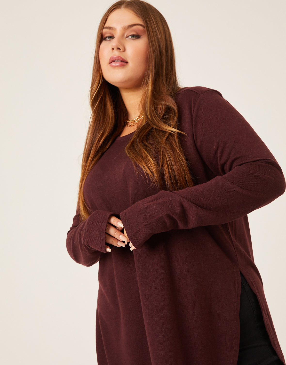 A simple basic perfect for cold-weather layering, the?Curve Knit Flowy Long Sleeve Tee?is a great foundational wardrobe piece. This plus size?oversized?top is great for layering under shackets or??for a warm winter outfit or with a pair of simple??for a comfortable loungewear look.