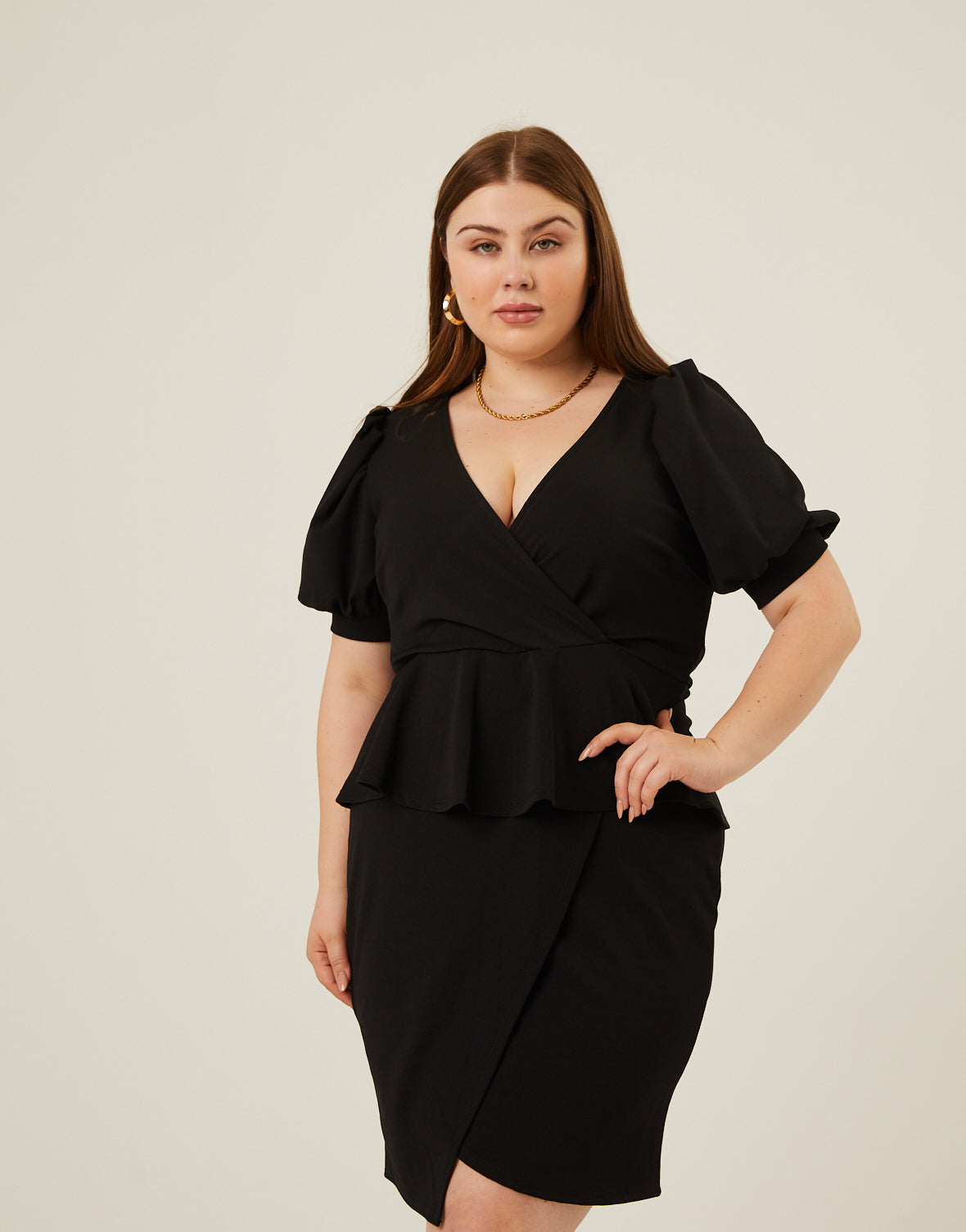 The?Curve Peplum Tie Belt Dress is a simple style with trendy details.