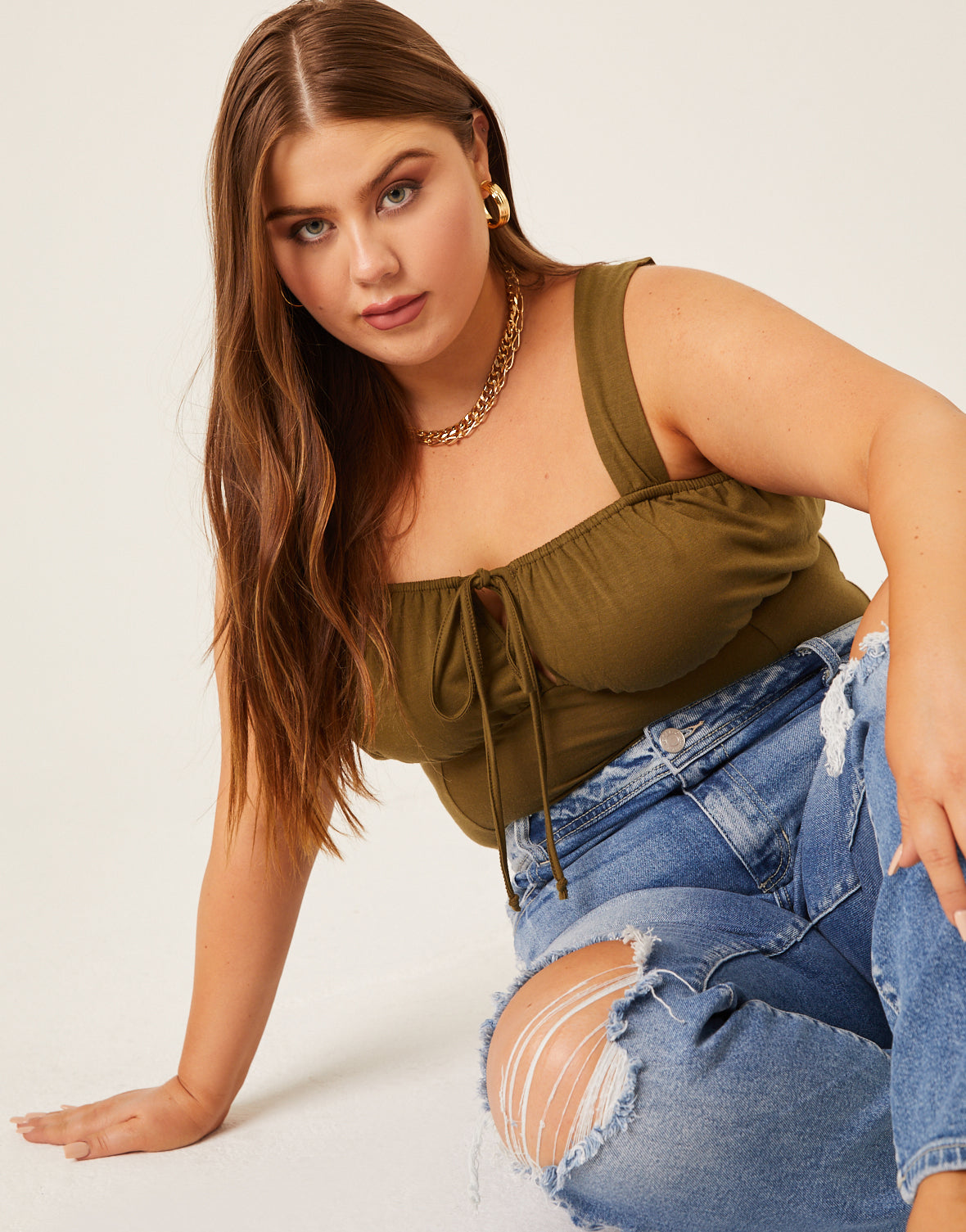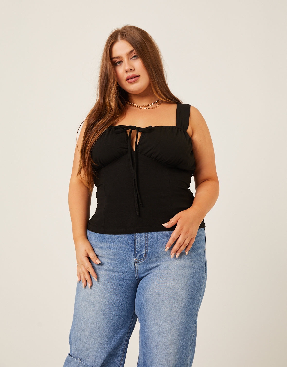 An easy, sultry top, the?Curve Ruched Bust Tank is a great basic to have on hand. This plus size tank top is detailed enough to be worn on its own but we love throwing a ?over everything, and the pretty bust detail gives a great excuse to show off a new?!?