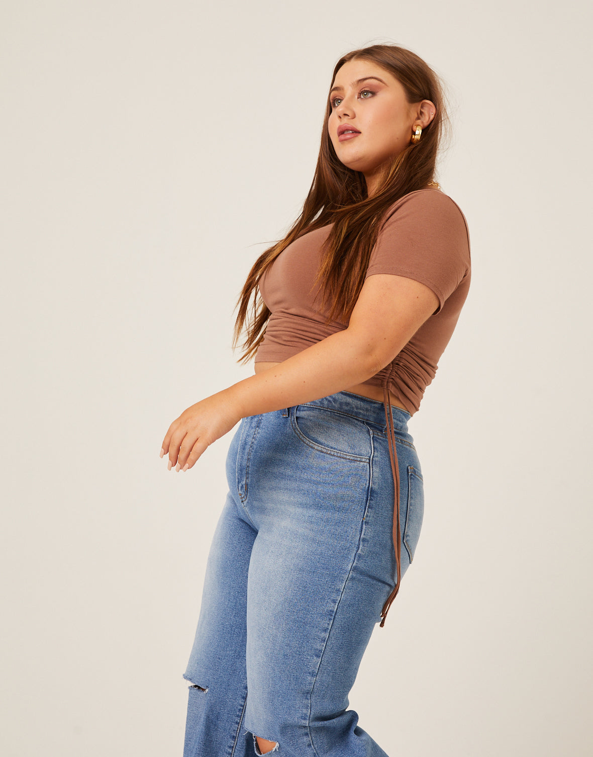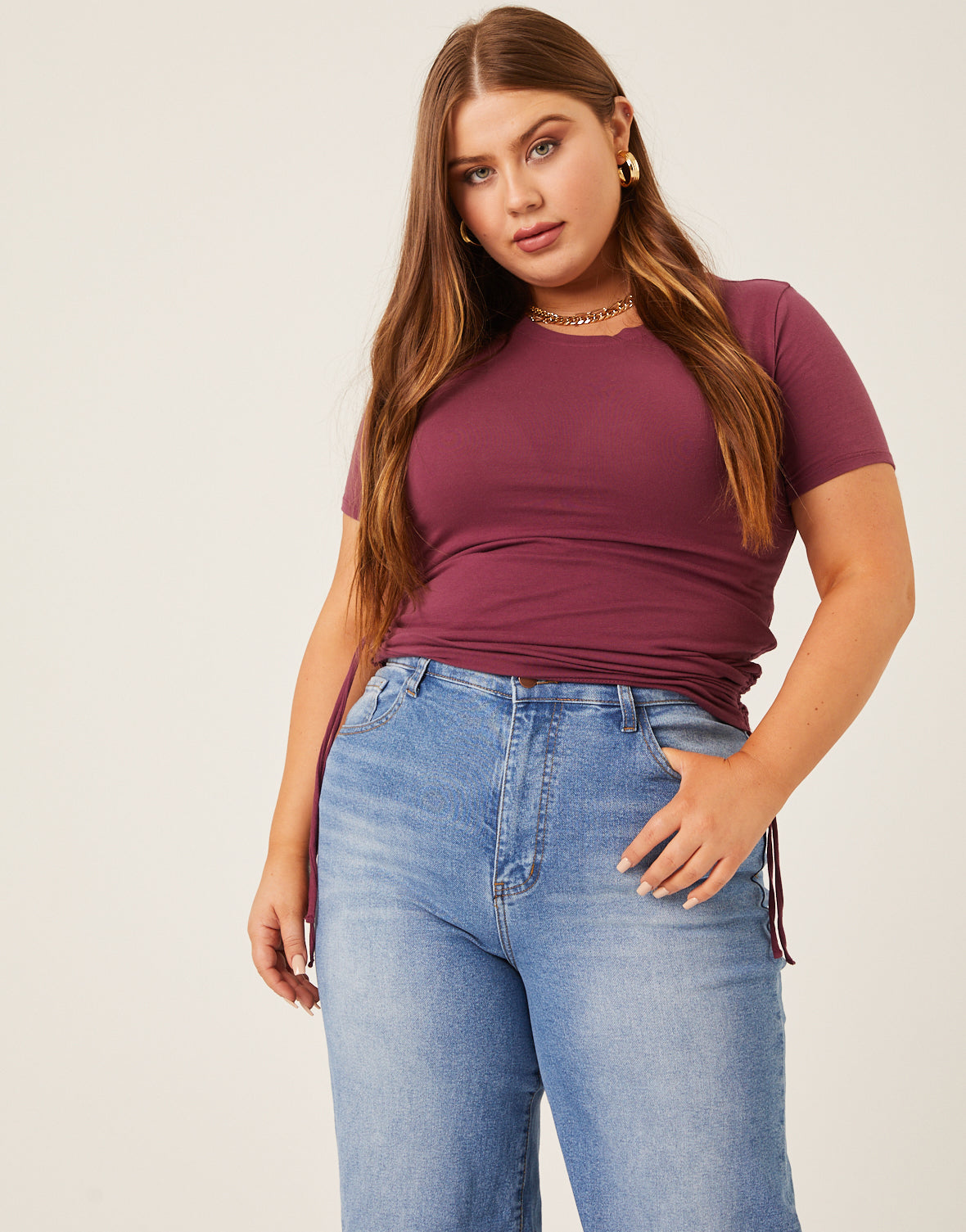 An easy but trendy basic, the?Curve Side Ruched Tee is?great for everyday outfits. This plus size t-shirt is a go-to for casual outfits when you pair it with some staple trendy ?and can also be dressed up?a bit with a .
