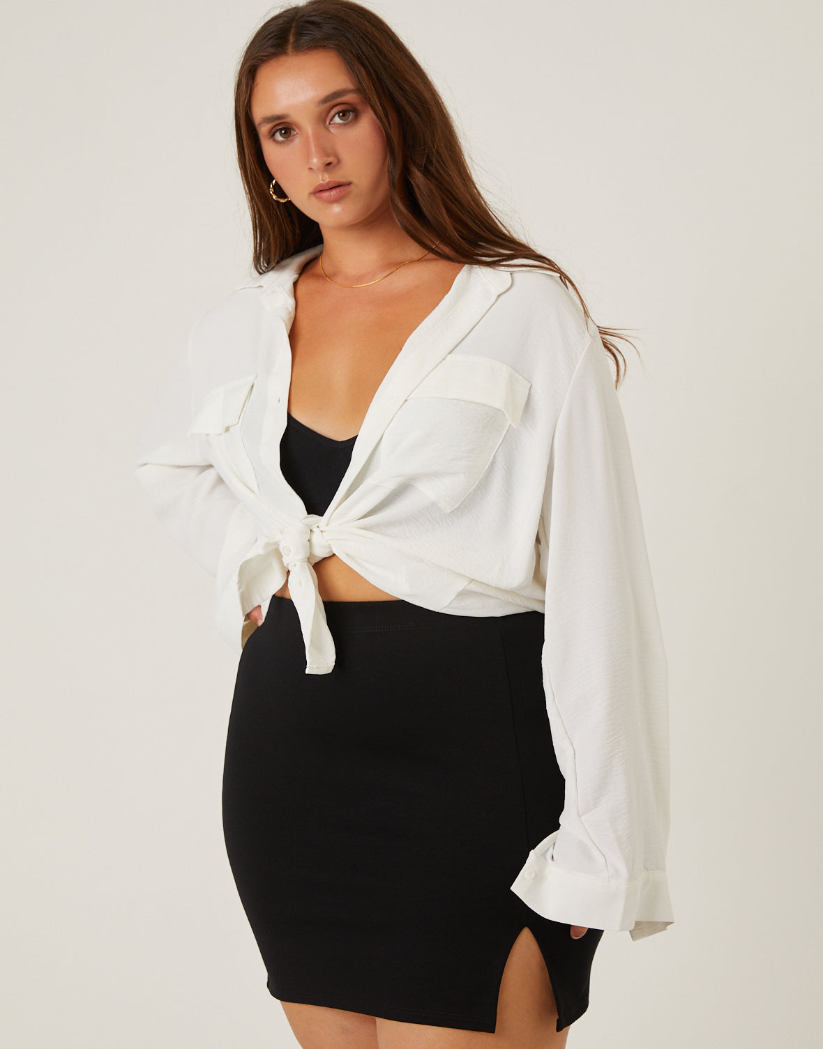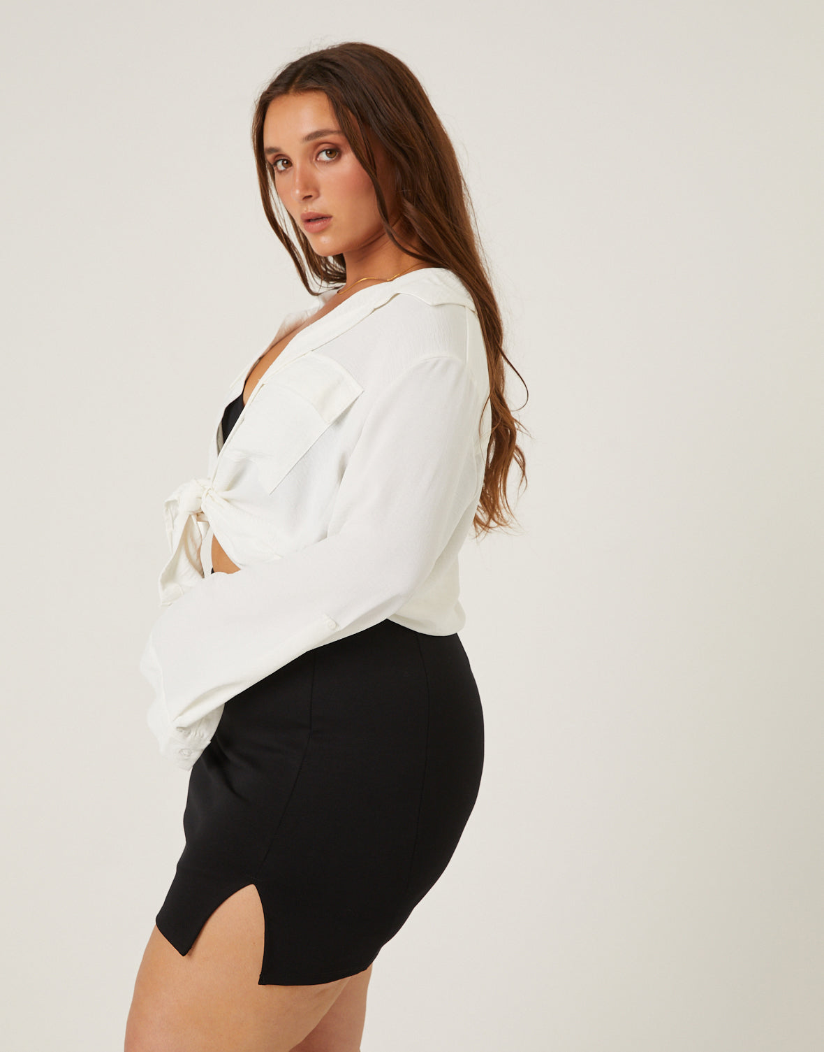 The?Curve Side Slit Mini Skirt?is a simple yet flirty skirt, great for an easy night-out outfit.
