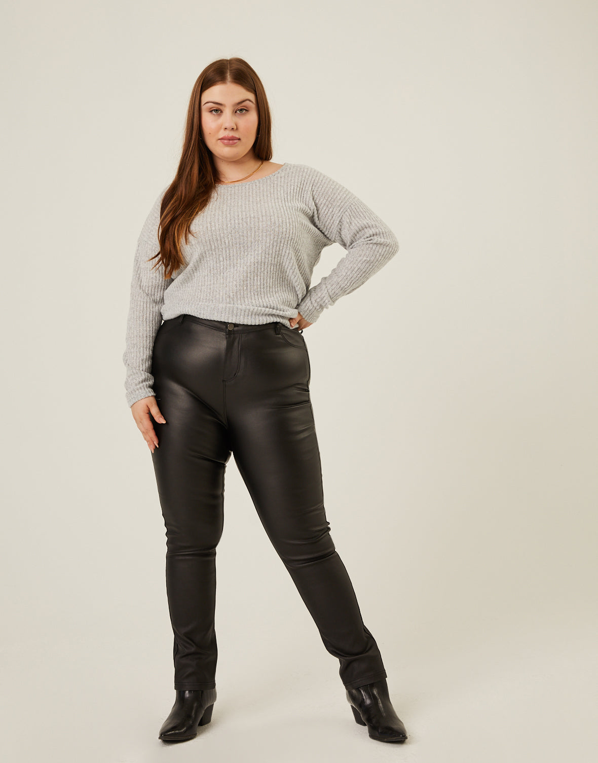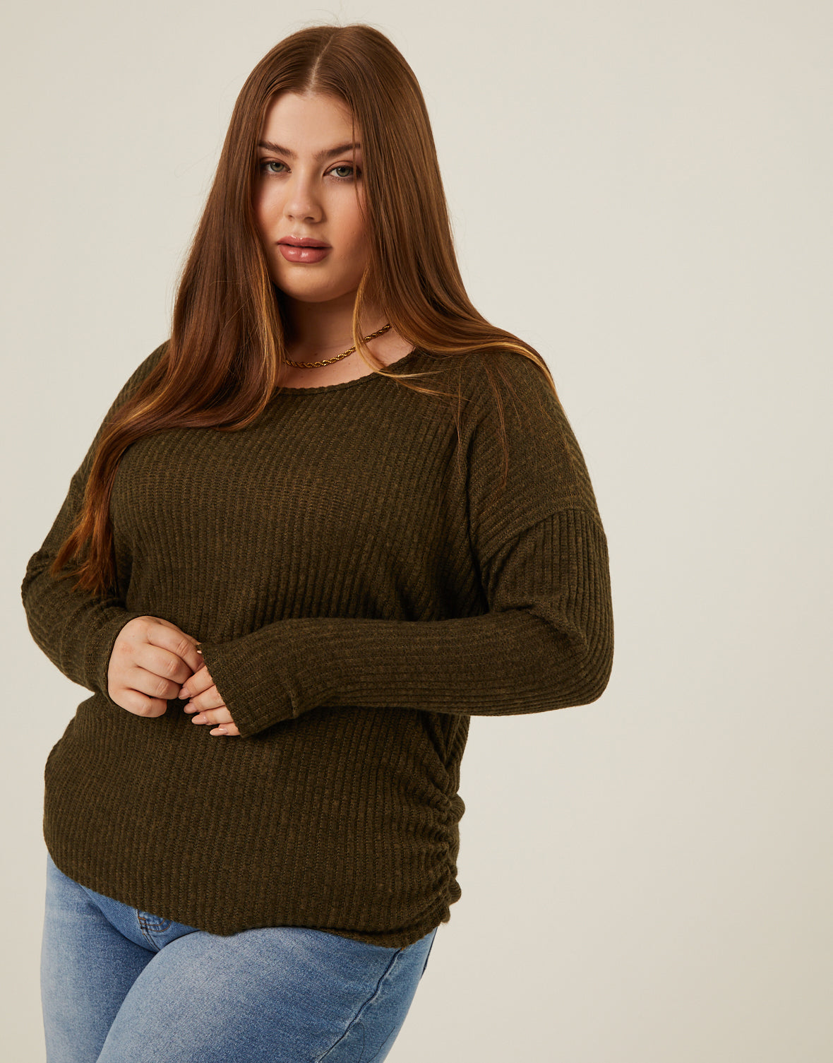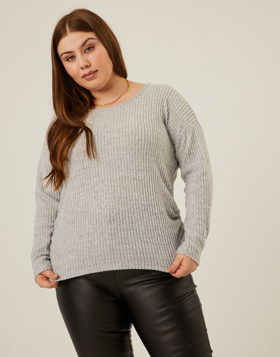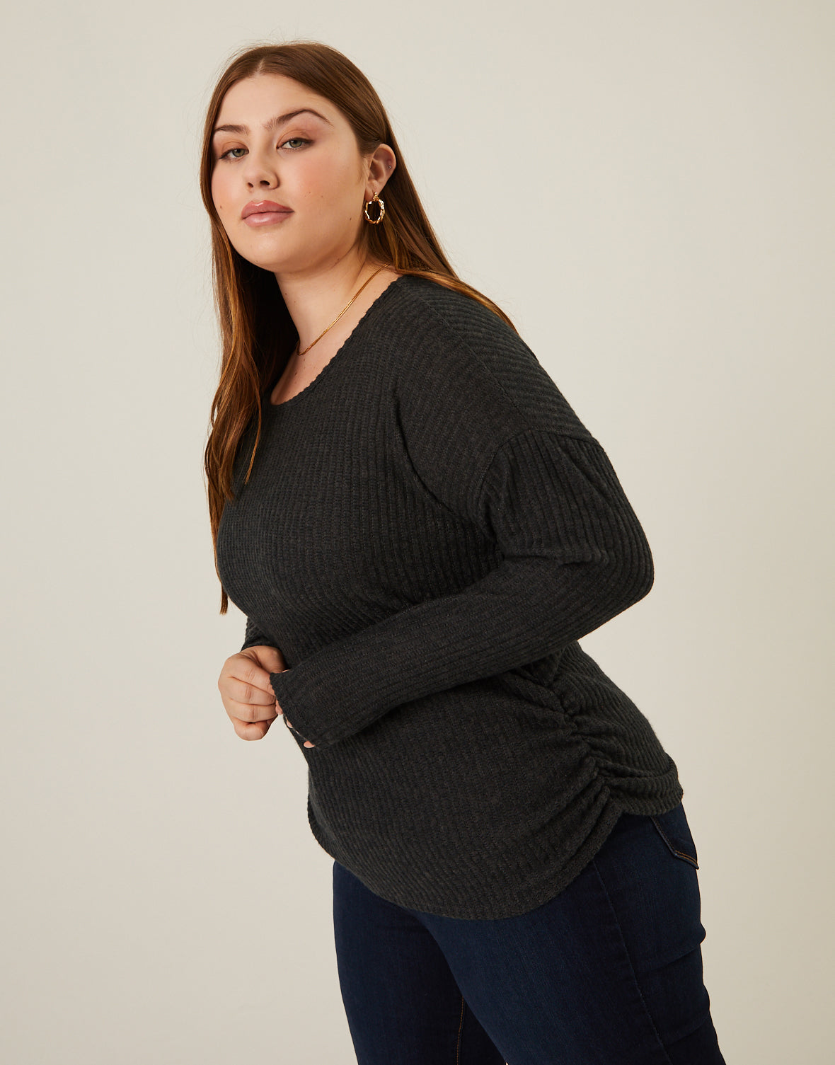 Plus Size Soft Ribbed Long Sleeve Tee