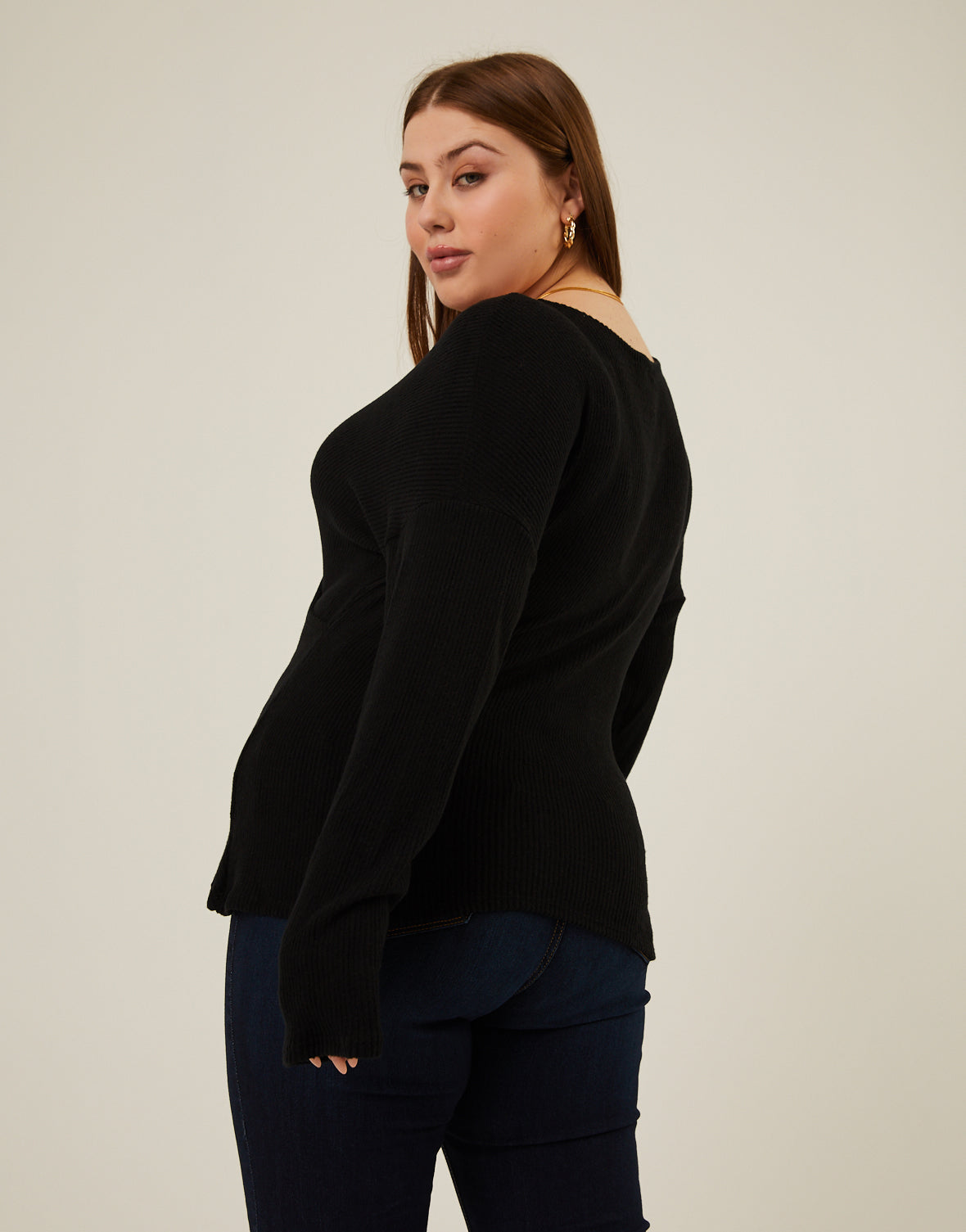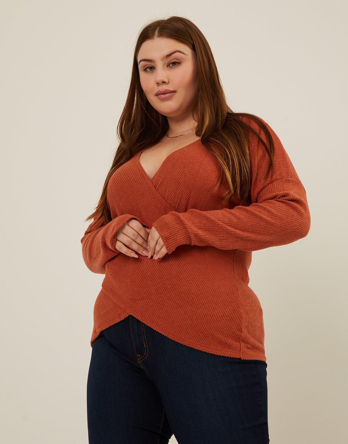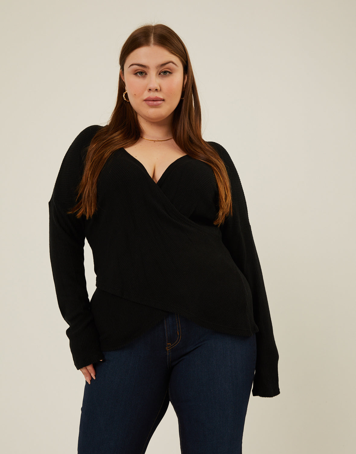 Simple with a super flattering cut, the Curve Soft Ribbed Surplice Top is a basic top with just a bit extra.