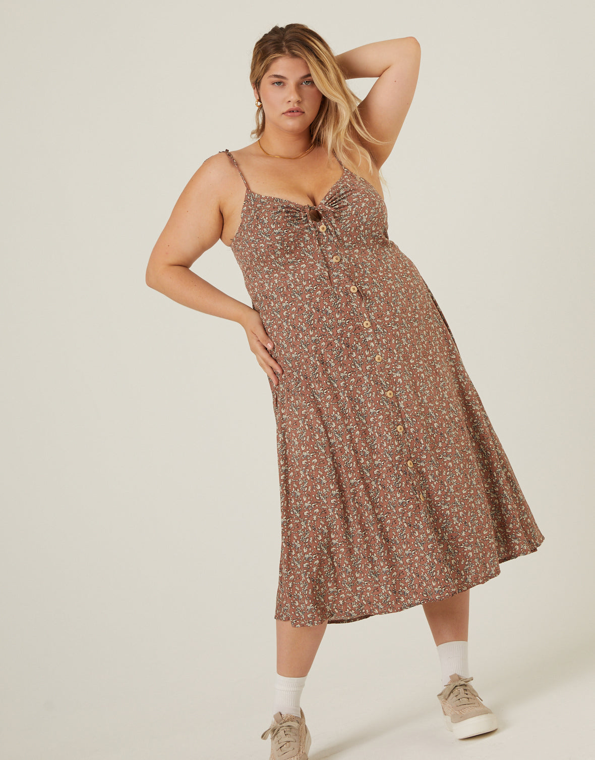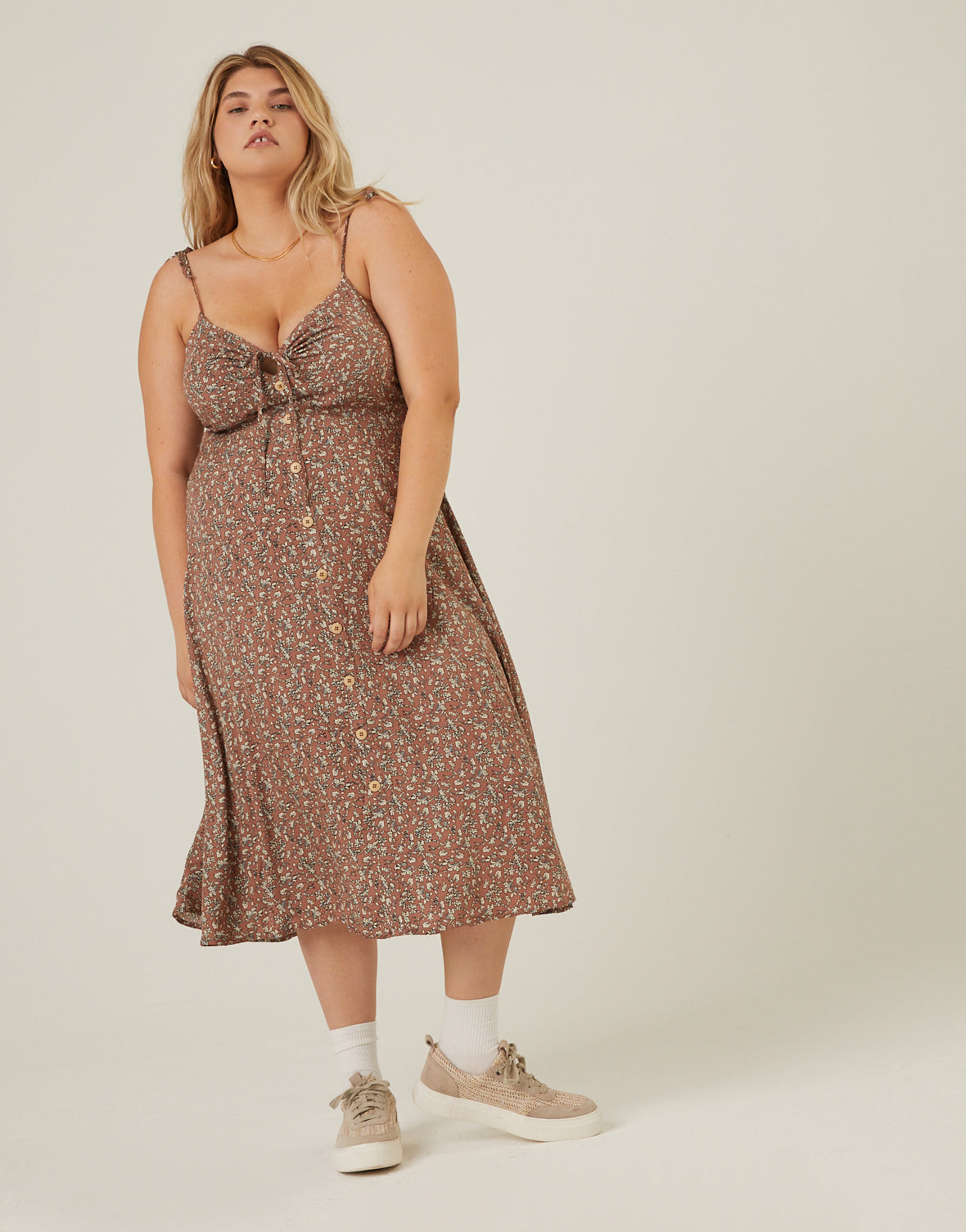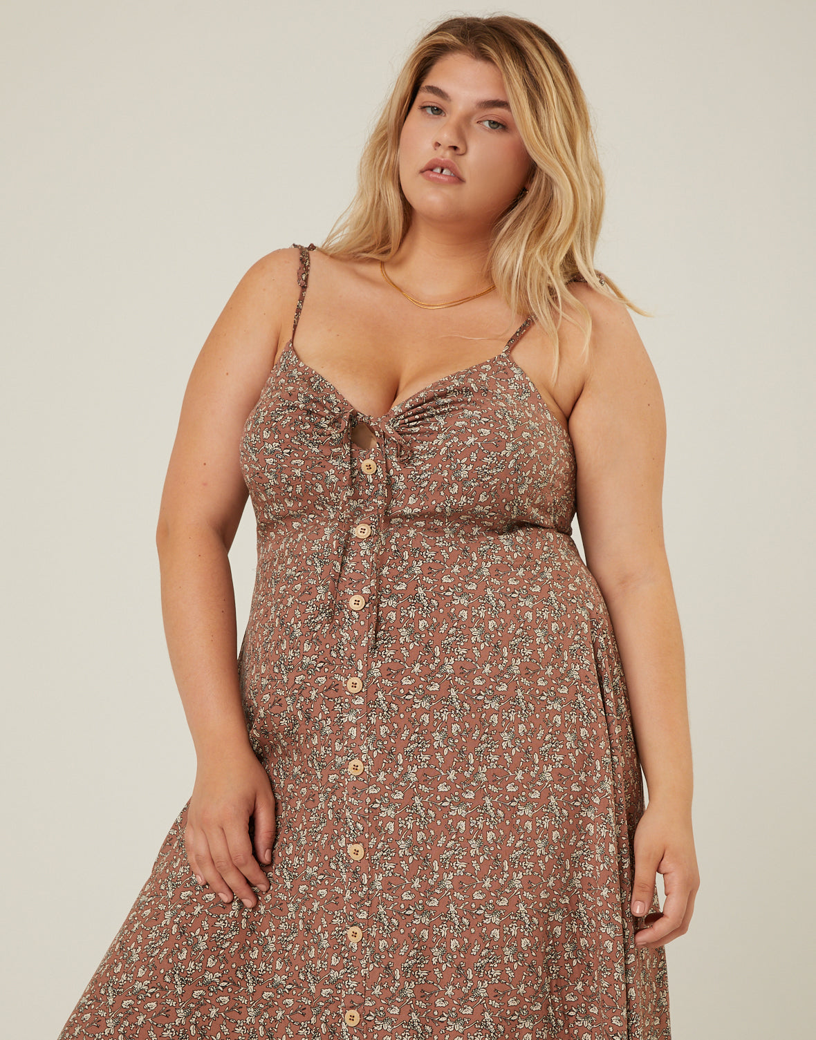 Featuring a delicate floral pattern and decorative buttons down the front, the Curve Tie Strap Floral Button Dress is a sweet summer outfit.