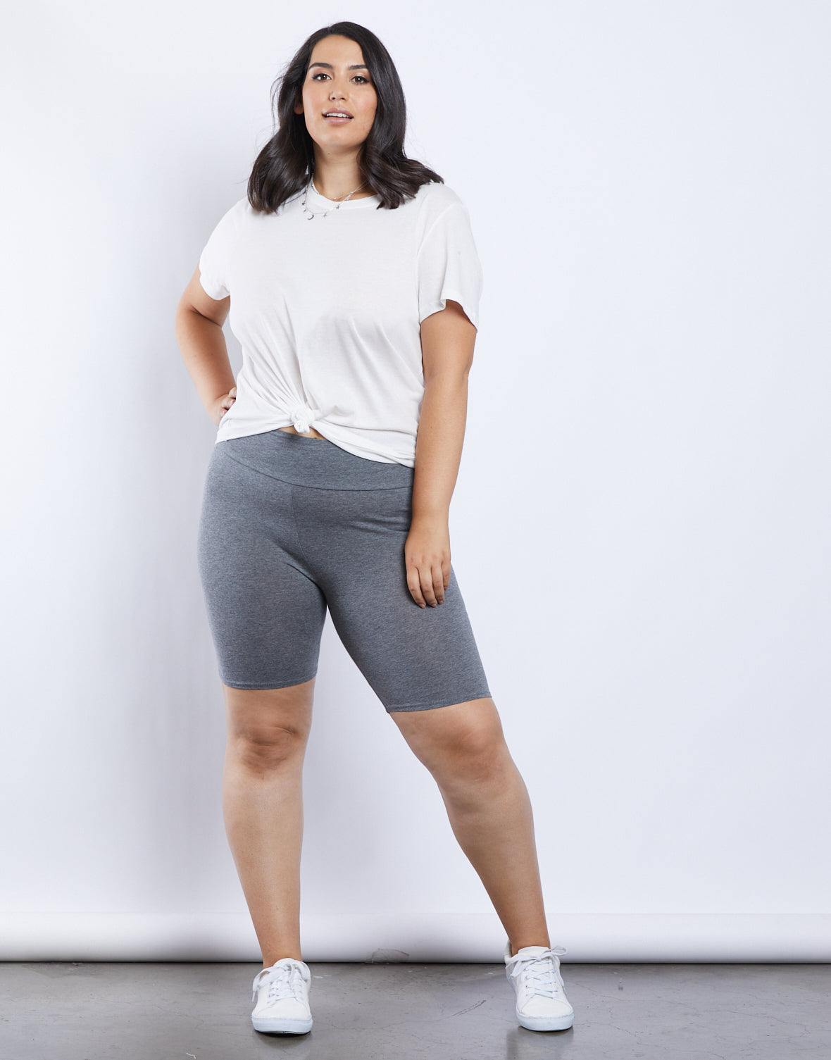 The Curve Relax This Weekend Shorts are made of a soft knit material and does stretch.?Band can be worn folded over. Wear this with a graphic tee, denim jacket and strappy heels.