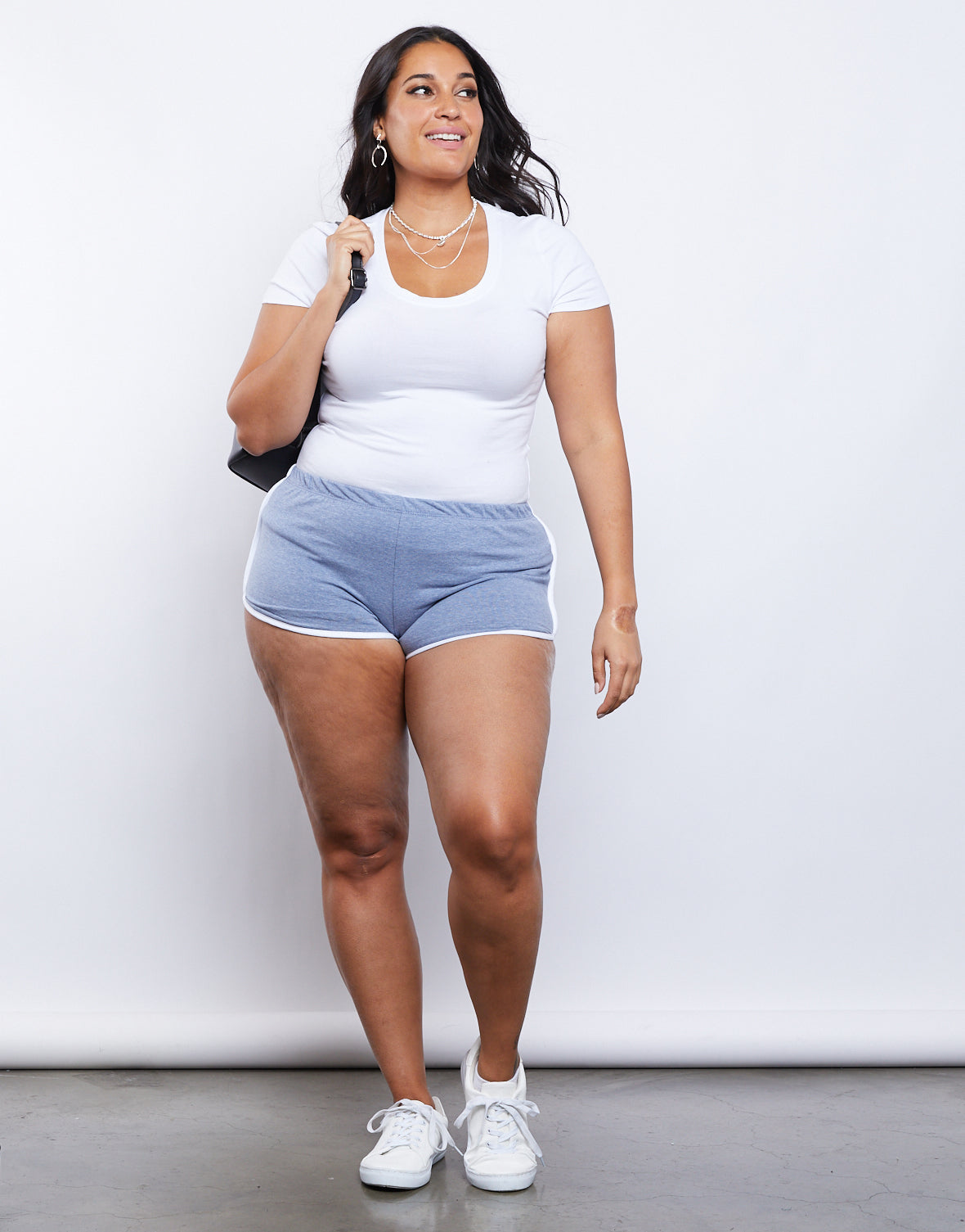 Whether you're ready to workout or just lounging around the house, these Curve Striped Sporty Shorts will have you in full comfort all day long. They're made from a super soft and comfy fabric giving a lightweight feel. Pair these plus size lounge shorts with an oversized and sneakers for the ultimate comfy outfit.